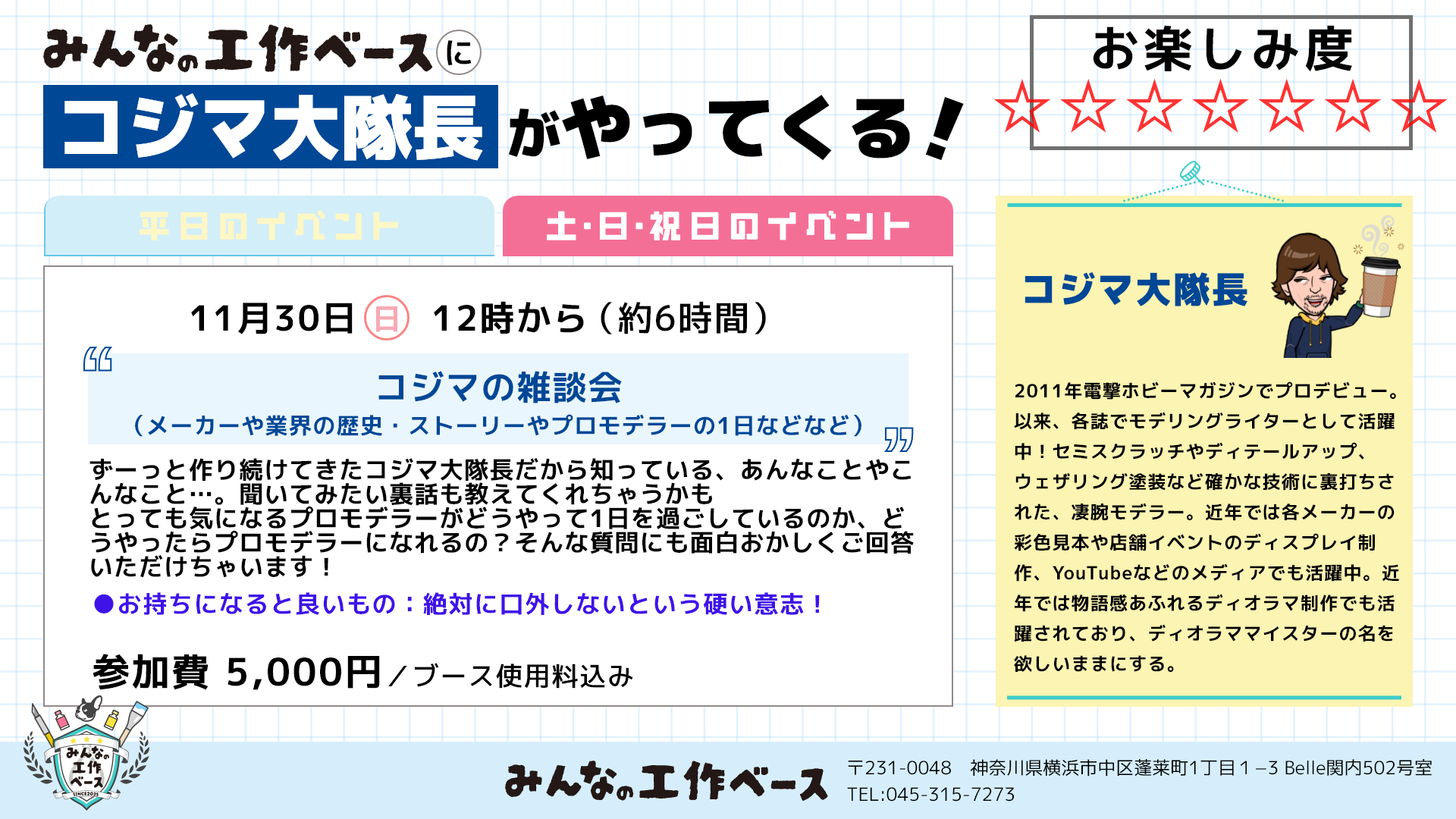 「11月のコジマ大隊長のイベントってどーなるの?」というみなさまからいただくご質問にお答えします!